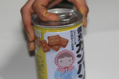 固いクラッカーのような三立製菓 (サンリツ)カンパン。普段は、普通に美味しく頂けます。保存期間が短い市販のカンパンには、保存缶に入ったカンパンのように金平糖が入っていません。水分が無いので口がパサパサするし喉が乾きます。非常時は、水道が止まっていることを前提で考えなければいけません。歯や噛む力が弱い幼児・老人(高齢者)には、食べにくいです。