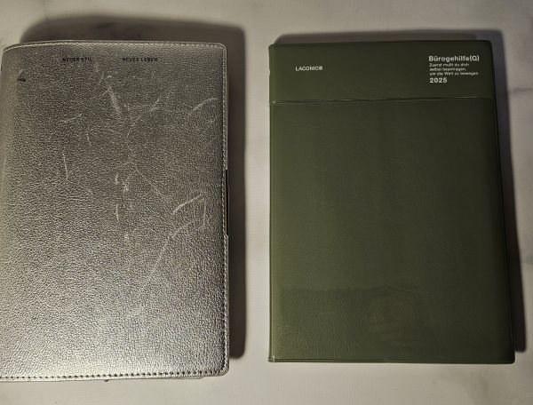 私がLACONICの手帳を使い始めたのは2015年。今年2025年で丸10年経過したことになります。サイズはA5。過去には、アイボリー、ネイビー、ブラック、ホワイト、ブラウン、シルバーを選ぶことが多かったです。
